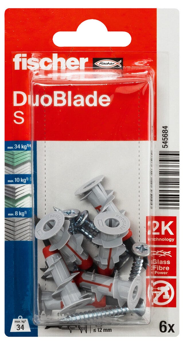 Fischer gipsplugg DuoBlade S K NV med skruv, 6-pack