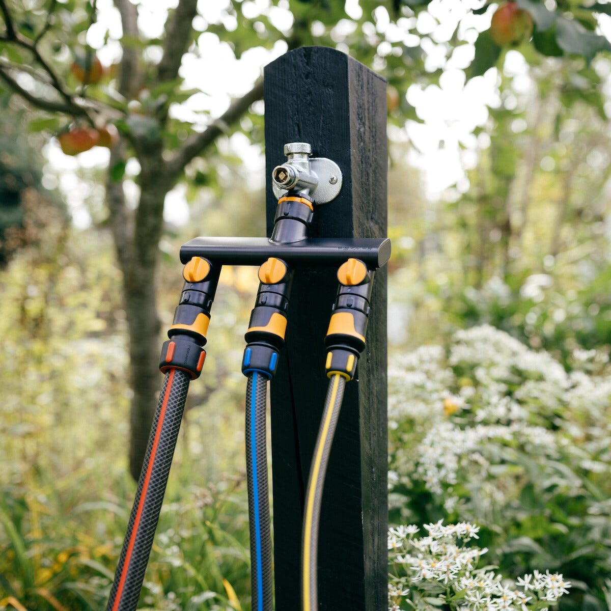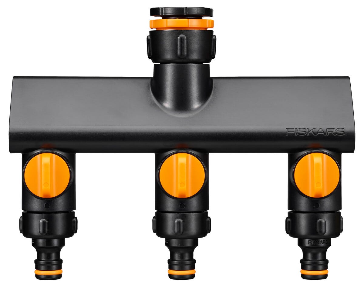 • Fiskars Comfort krankoppling trippel – reglera vattentrycket separat för varje slang.