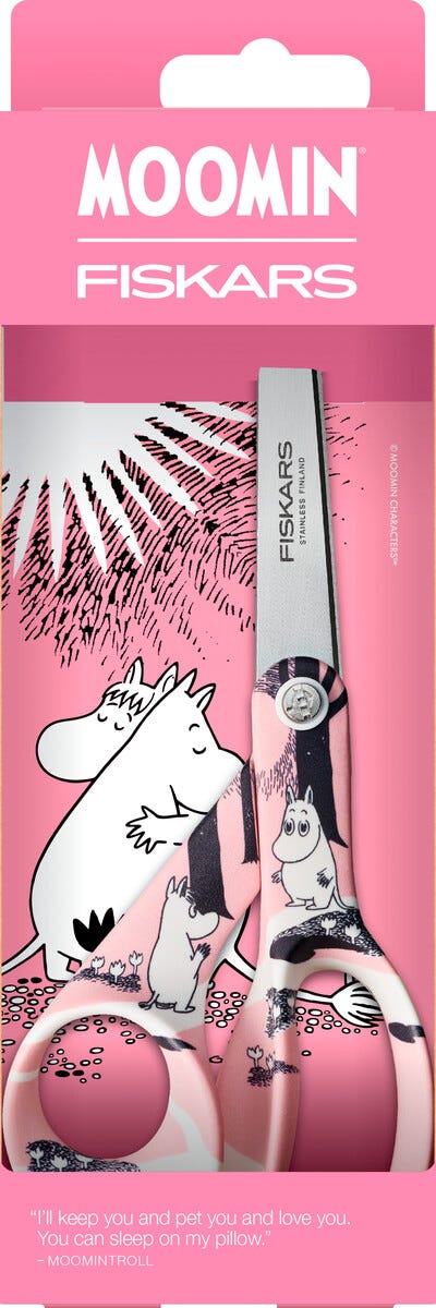 • Fiskars sax Mumin Love – färgglad universalsax med Mumintroll-motiv.
