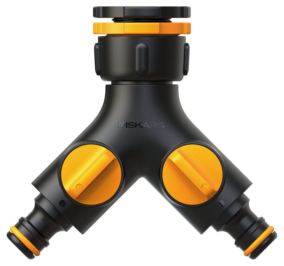 • Fiskars krankoppling 2-väg – reglera vattentrycket separat för varje slang.