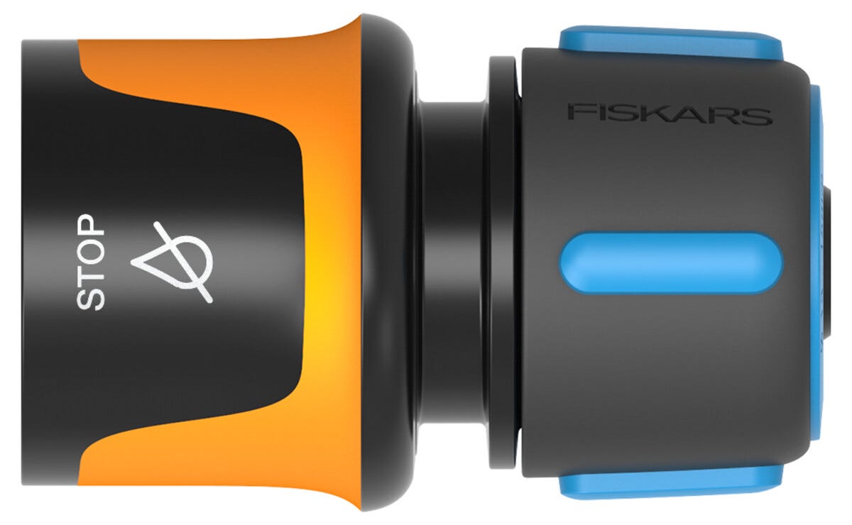 • Fiskars snabbkoppling med vattenstopp – ger en tillförlitlig och tät anslutning.