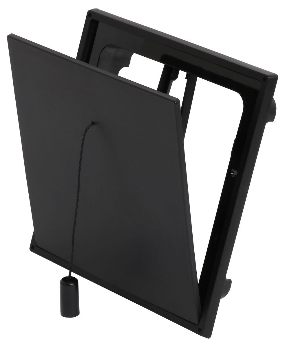 • Lock med gångjärn i underkant – passar fyrkantig kanal.