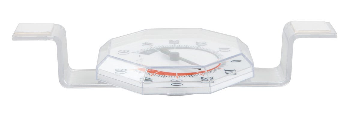 • Utetermometer med fäste för montering på utsidan av fönstret.