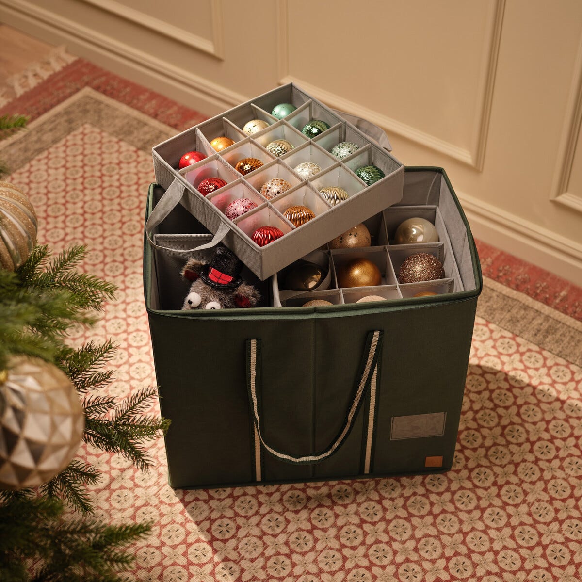 • Avdelare skyddar julgranskulorna och går att ta ut för flexibel förvaring.