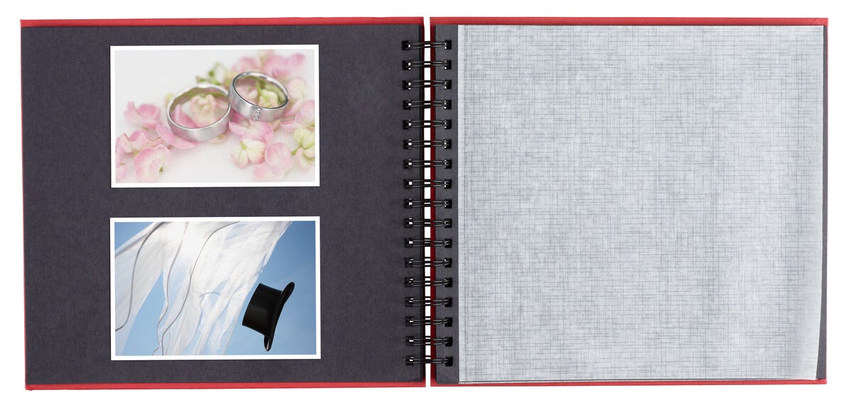 • Svarta albumblad med mellanblad av pergamyn.