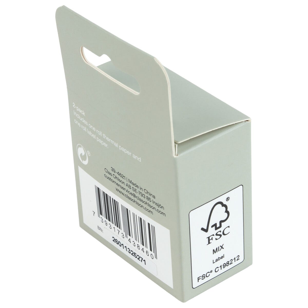 • En rulle vanligt termopapper och en rulle självhäftande etikettpapper.