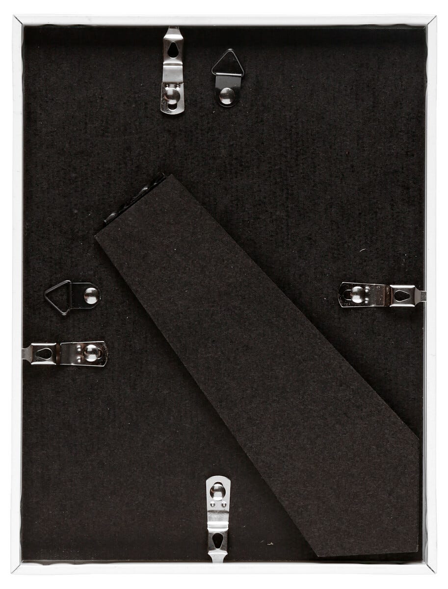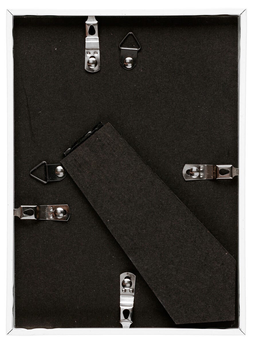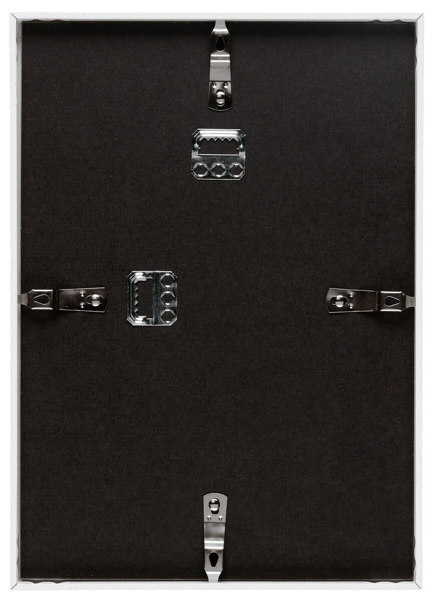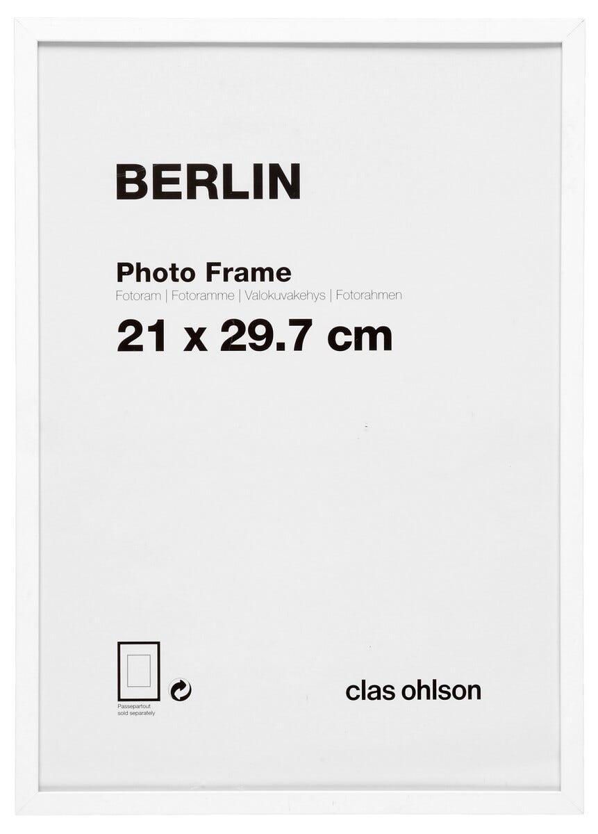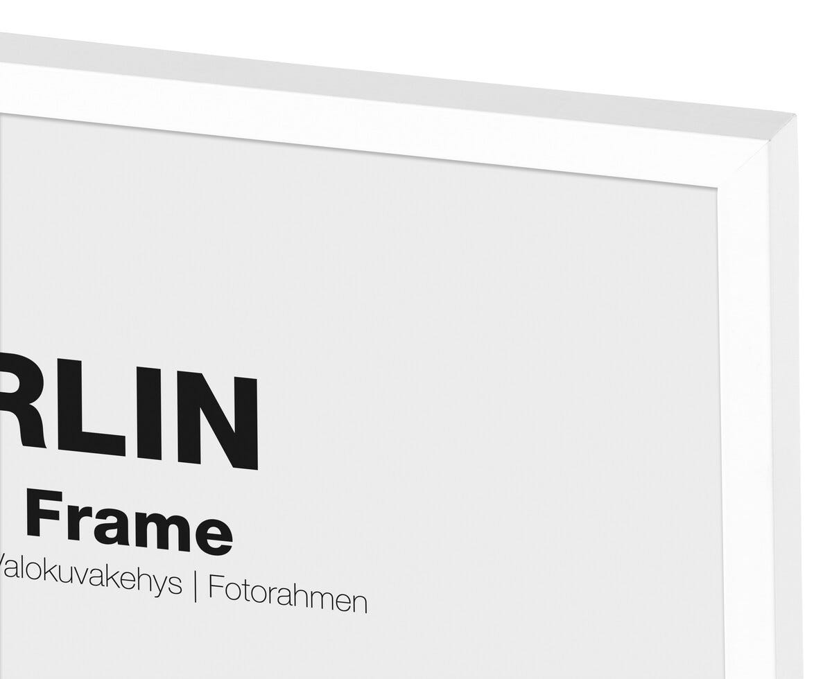 • Stilfull, vit aluminiumram med glas/akrylglas.