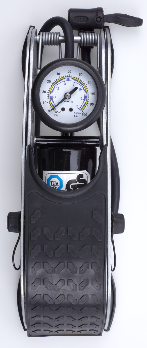 Fotpump med tryckmätare, Presta, Schrader, Dunlop