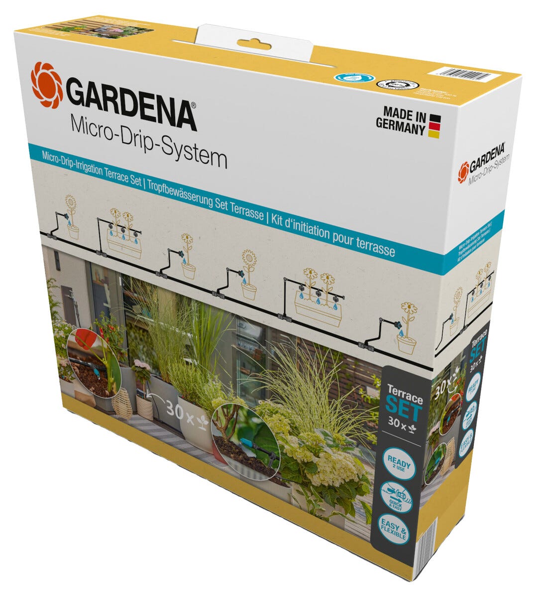 • Gardena Micro-Drip bevattning för terrassväxter – startset för 30 plantor.
