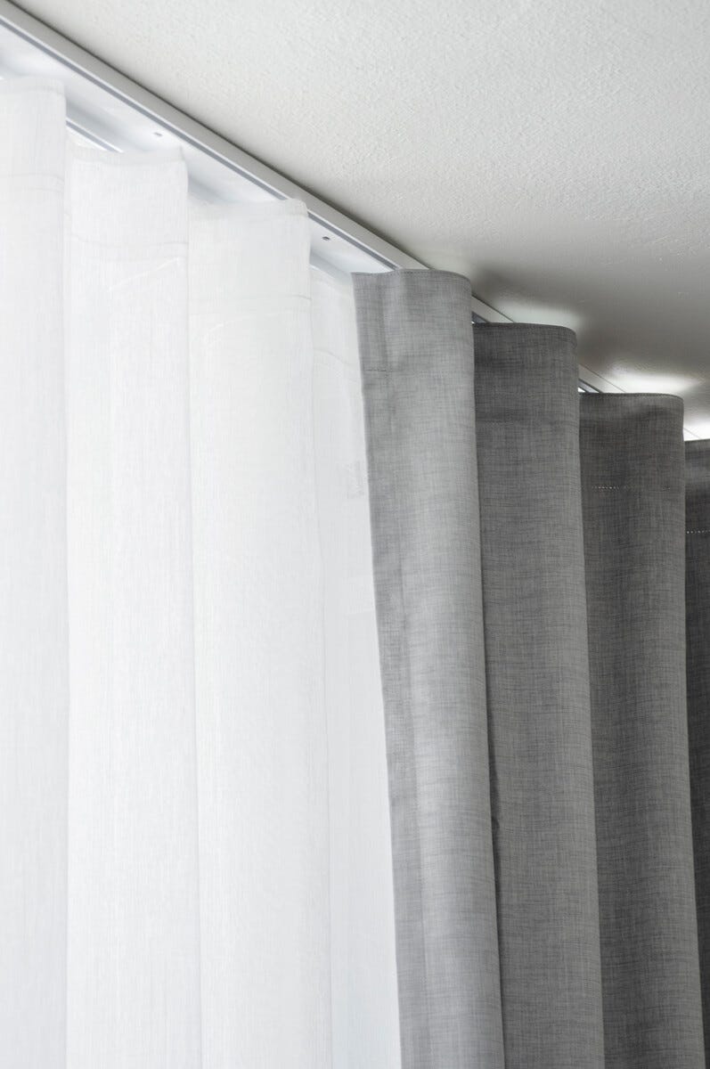 • Gardinskena med dubbla spår, växla mellan ljusinsläpp och mörkläggning.