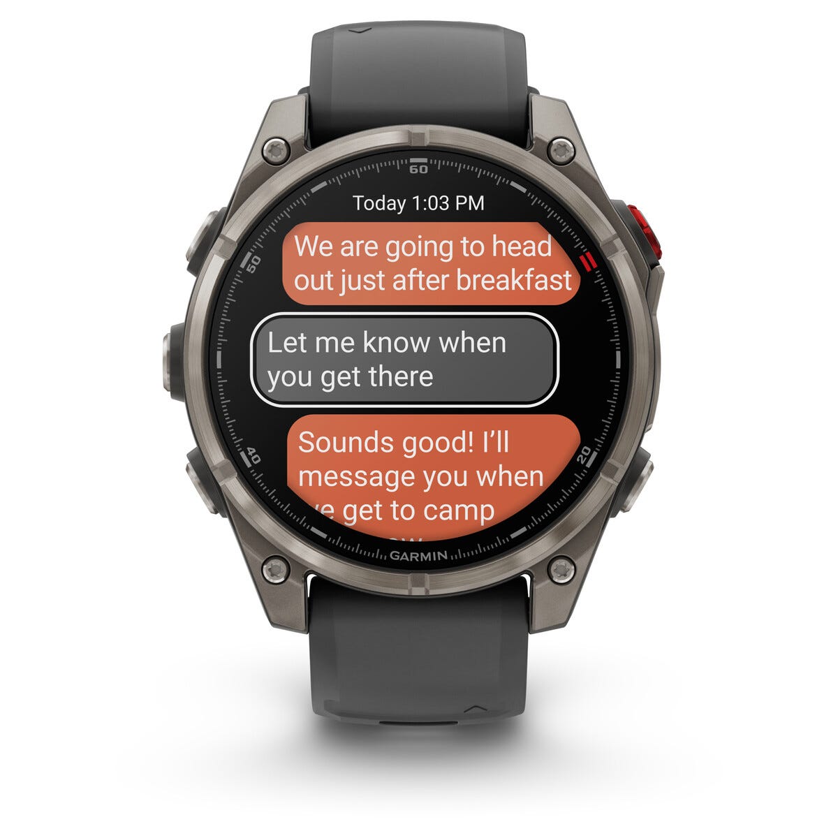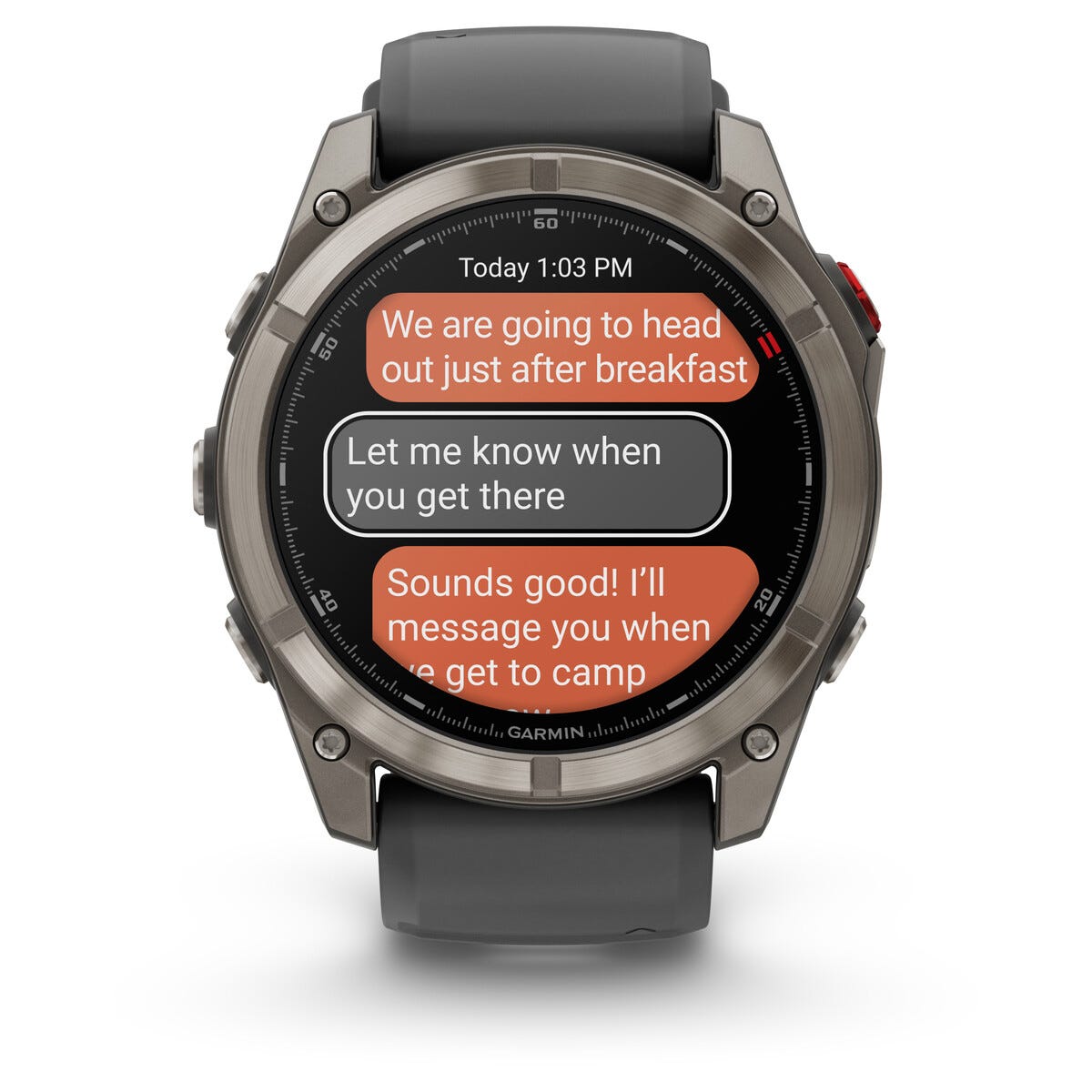 • Aktivitetsklocka med robust premiumdesign i titan med reptåligt safirglas.