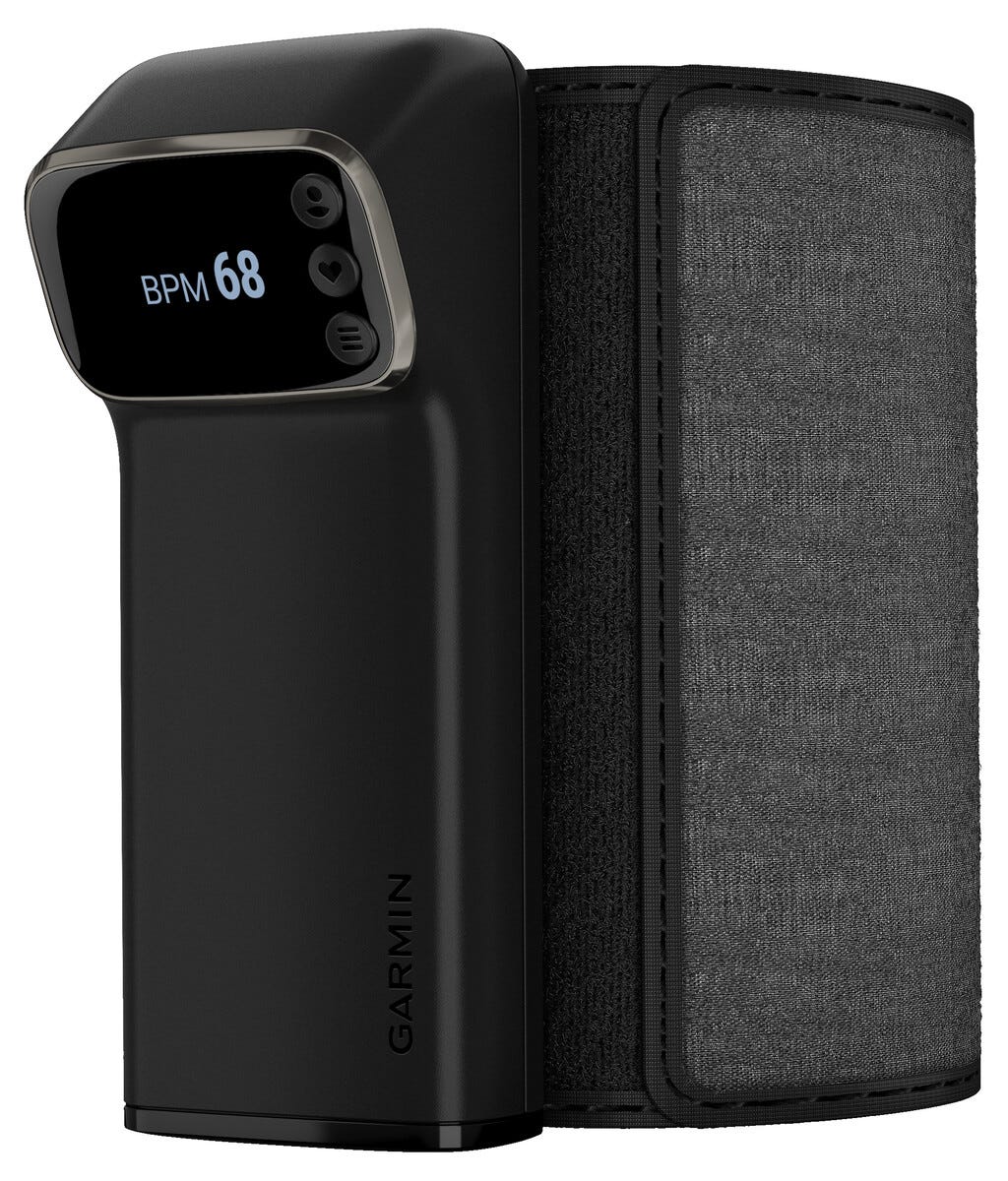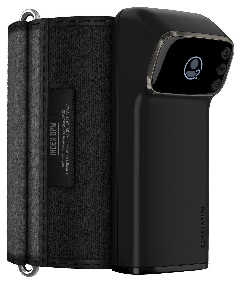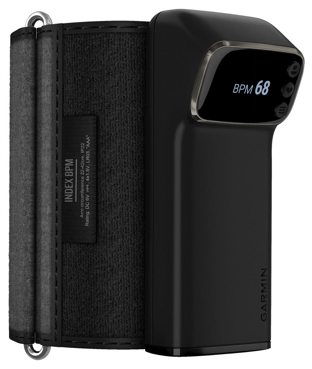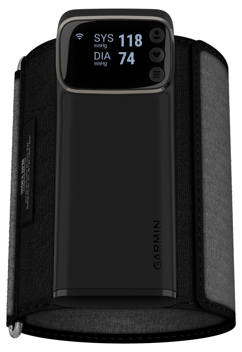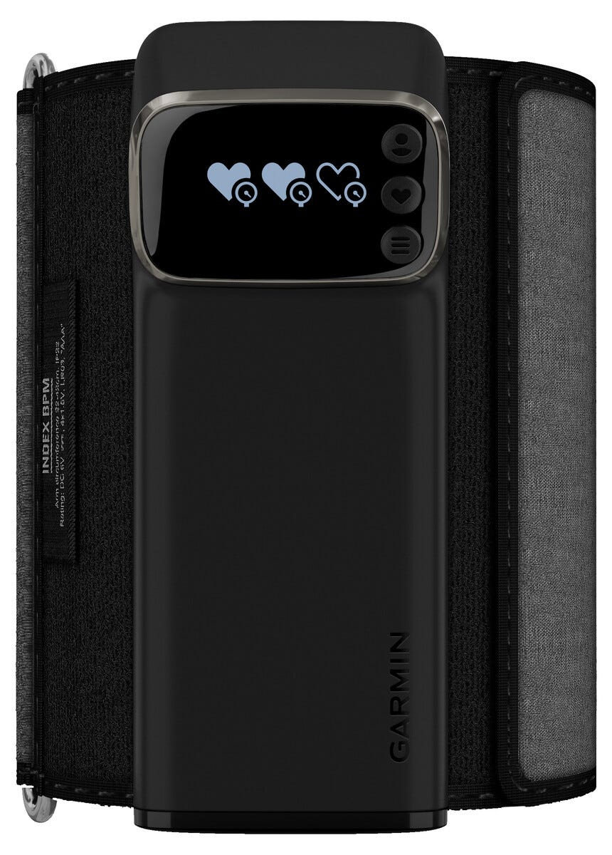 • Garmin Index BPM smart blodtrycksmätare med justerbar manschett (22–42 cm).