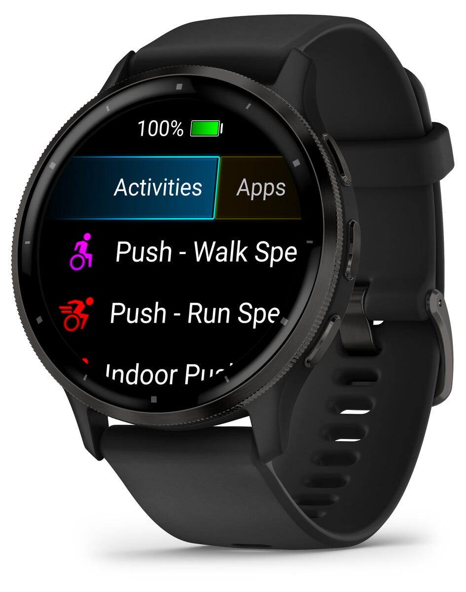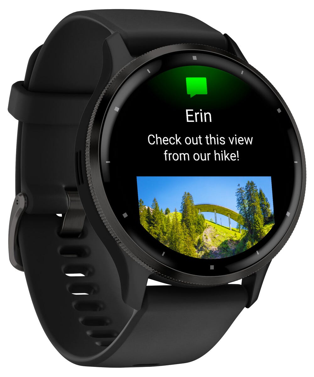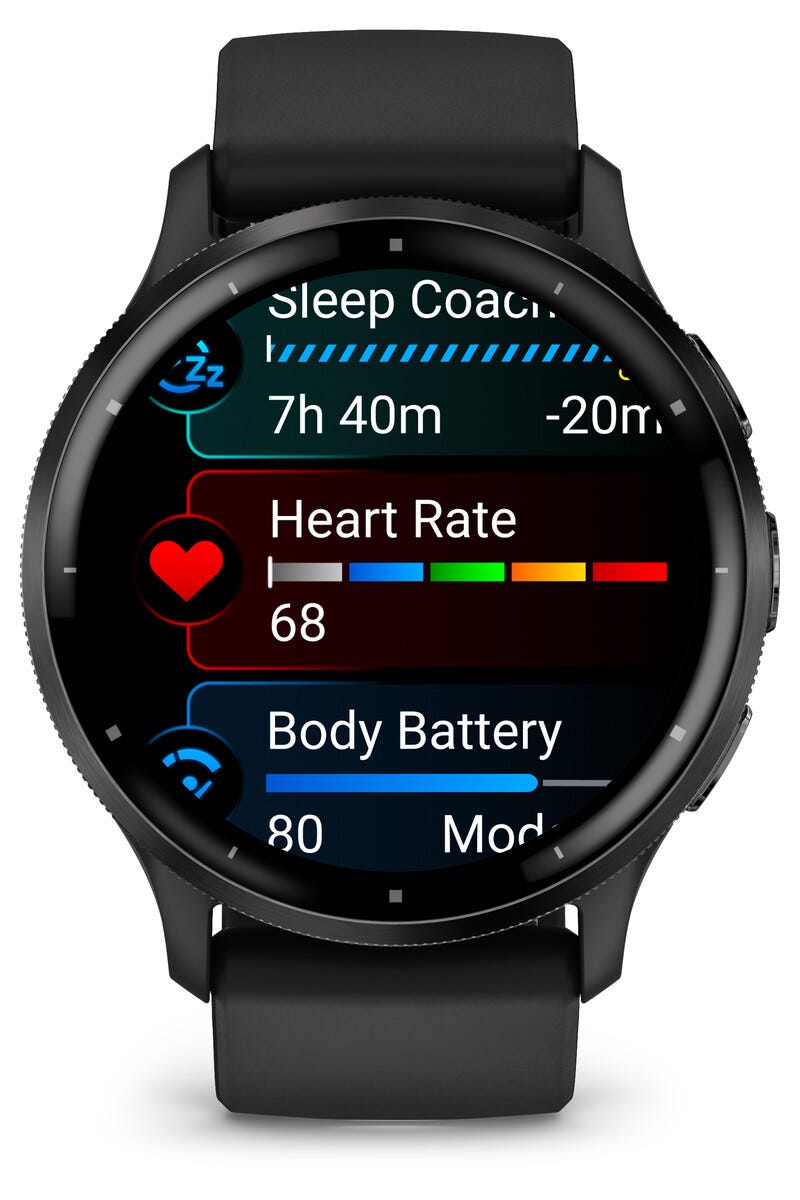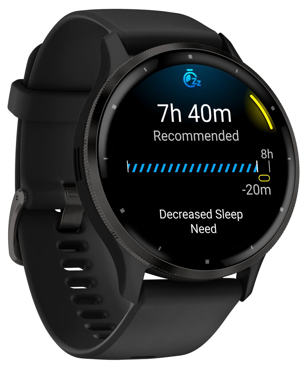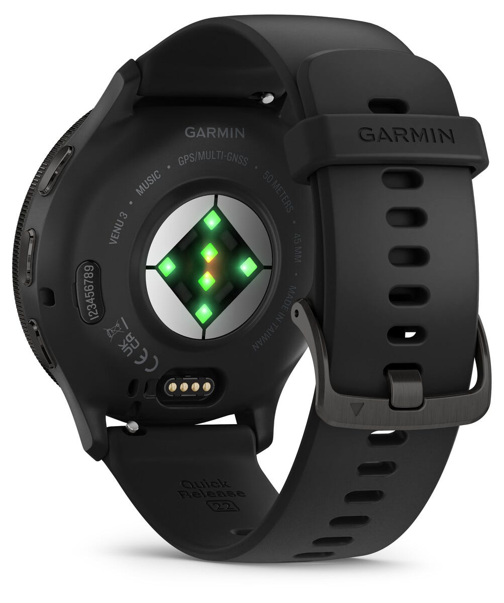 • Garmin Venu 3 vattentålig smartwatch med omfattande hälsospårning.