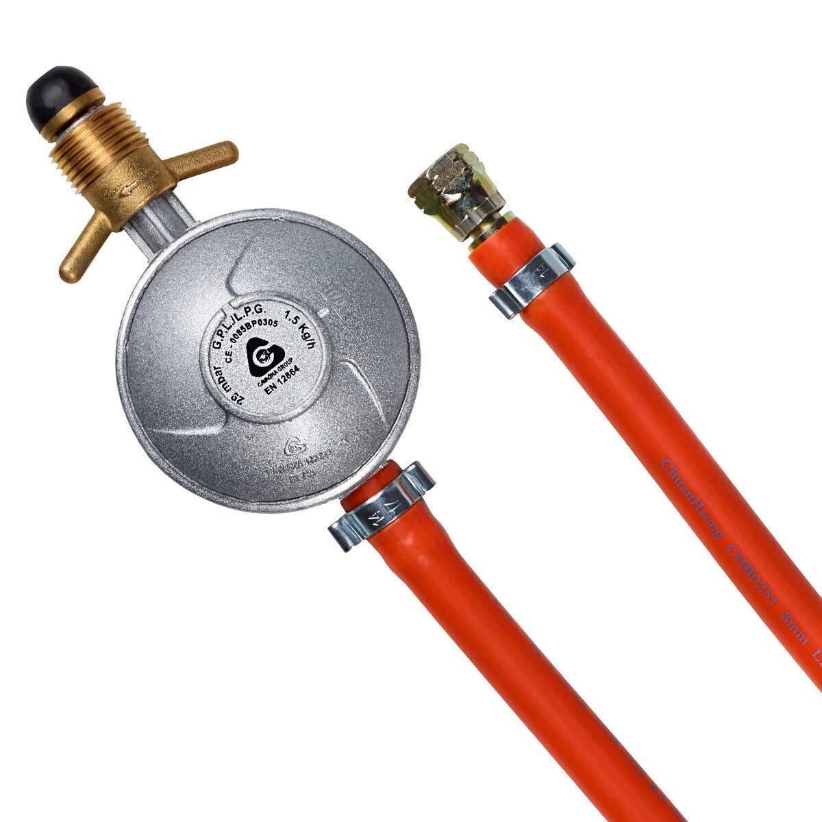• Reduceringsventil/Gasregulator med slang och kopplingar till gasolgrill.