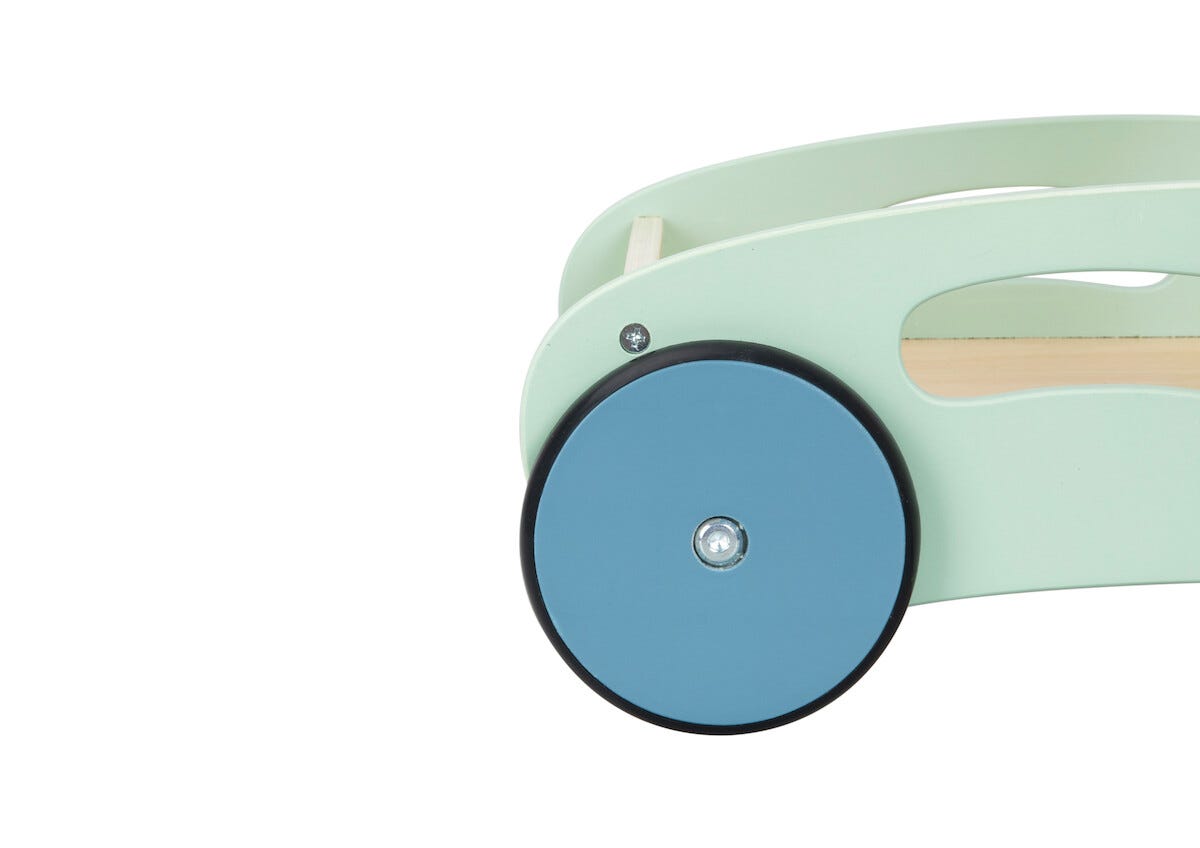 • Gåvagn i trä utan broms – motiverar småbarn till att träna på stegen.
