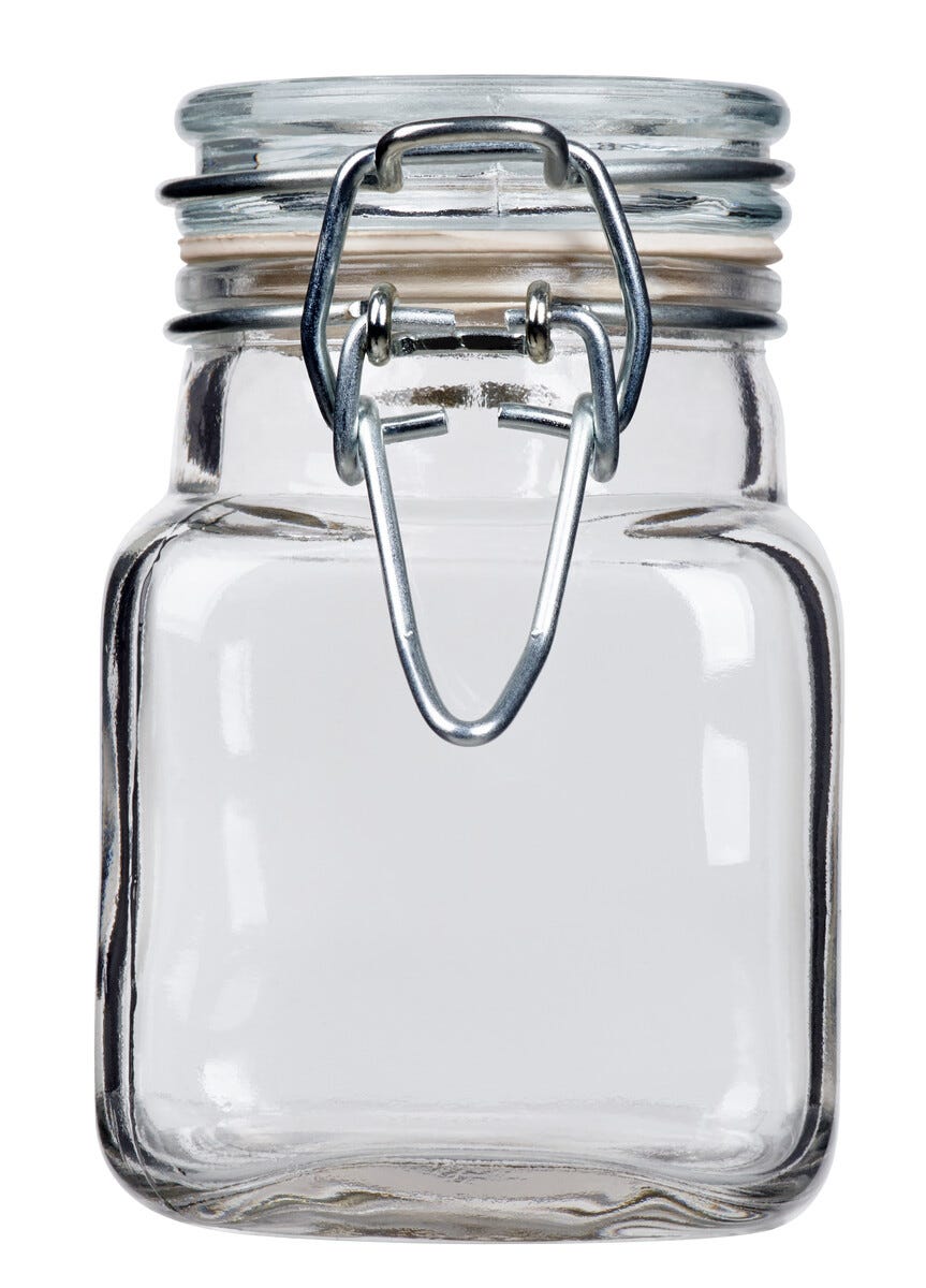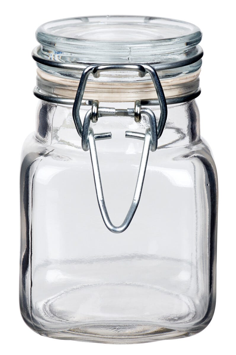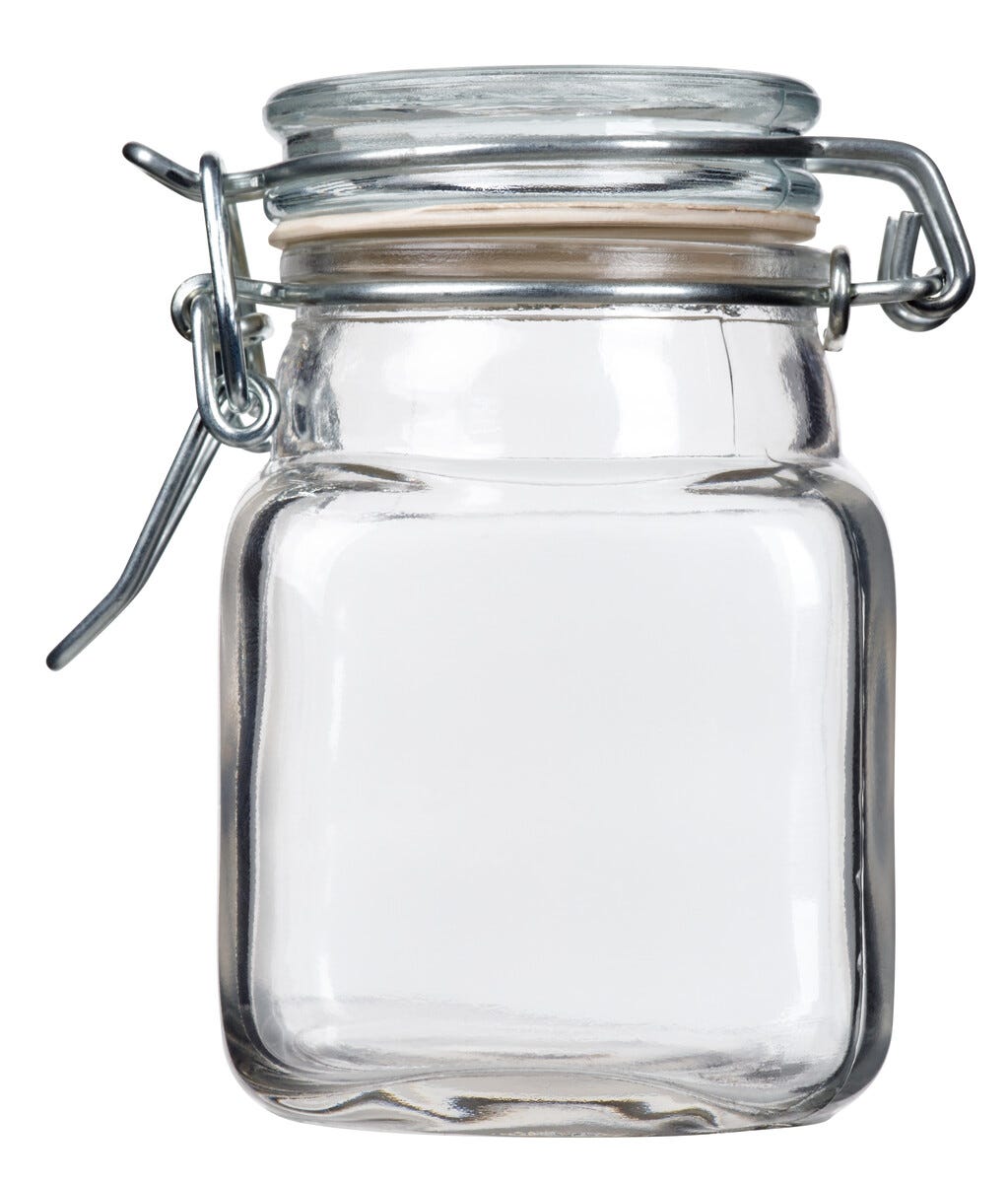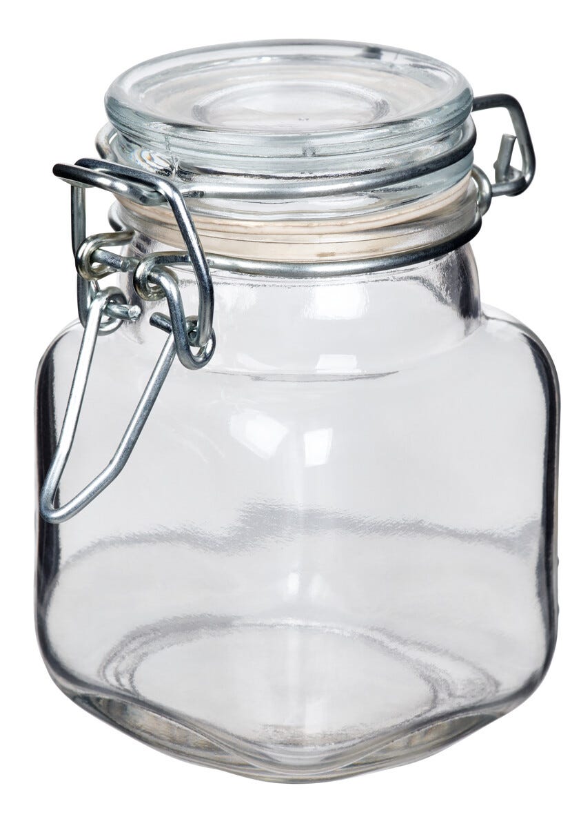 • Burk och lock av glas.