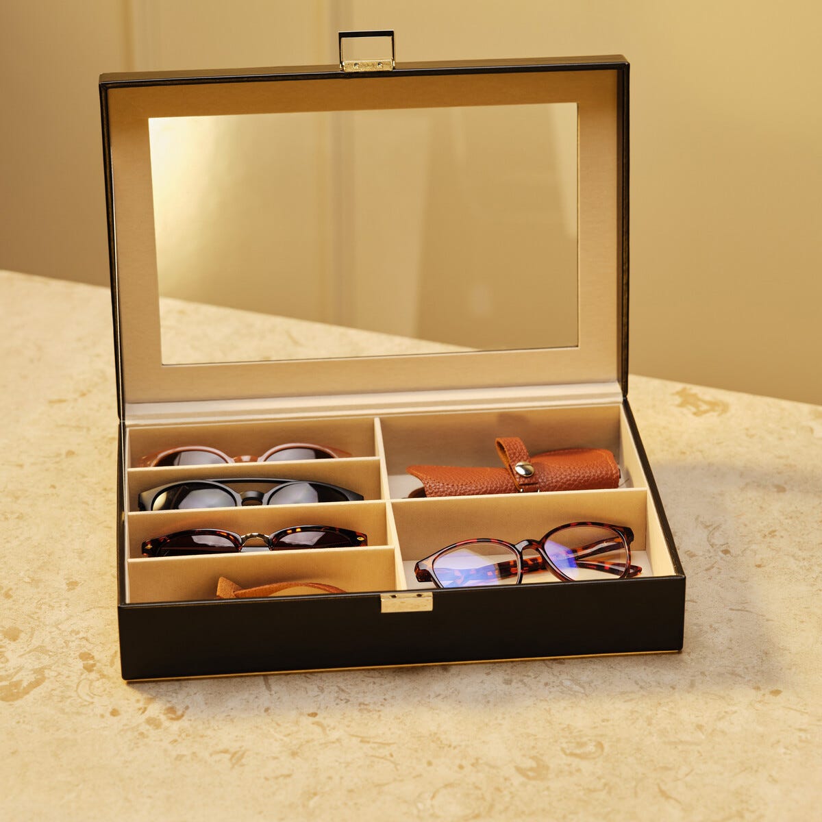 • Glasögonlåda med 4 fack för glasögon eller solglasögon.