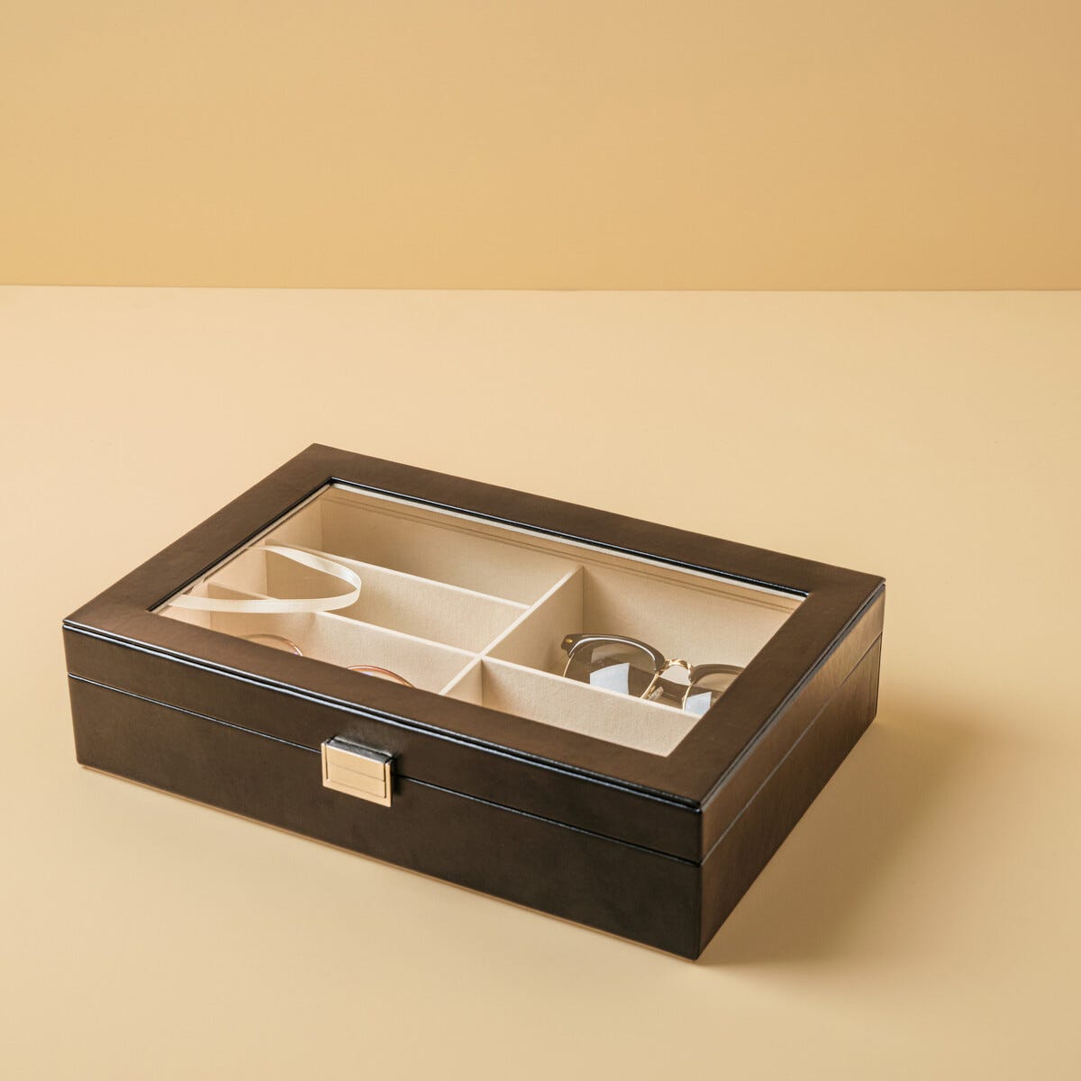 Glasögonförvaring, glasögonlåda med lock, 6 fack