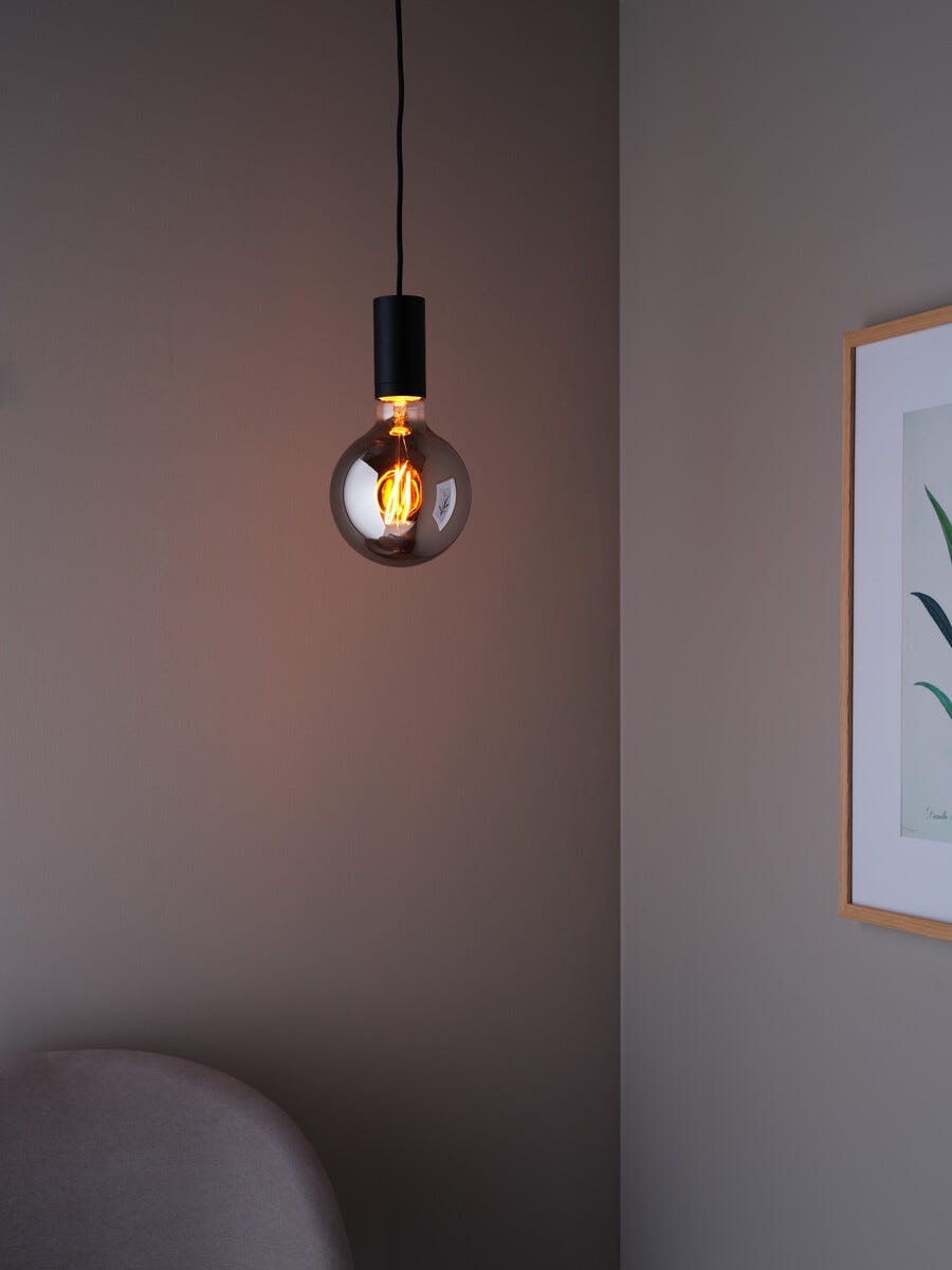 • LED-lampa E27 med mörkt lampglas – dimbar (LED-dimmer säljs separat).