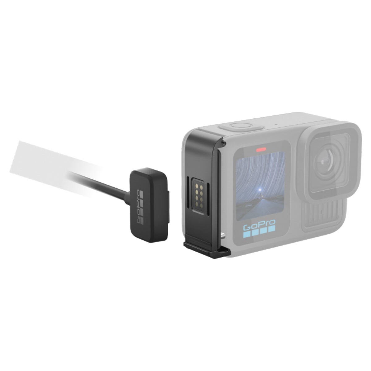 • Kontinuerlig strömförsörjning till din GoPro HERO13 Black – även utan batteri.