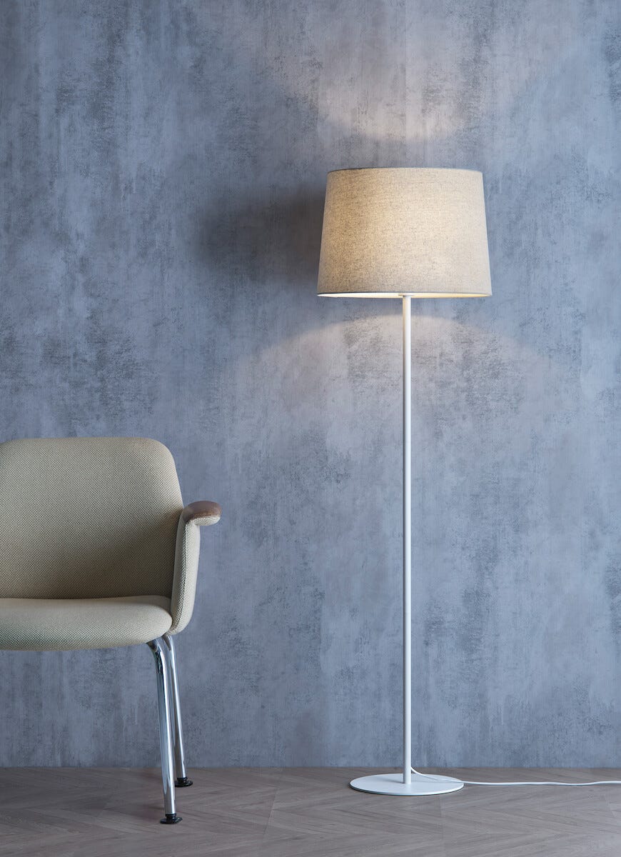 • Golvlampa med ett 1,3 meter högt stativ och rund lampfot, 28 cm i diameter.