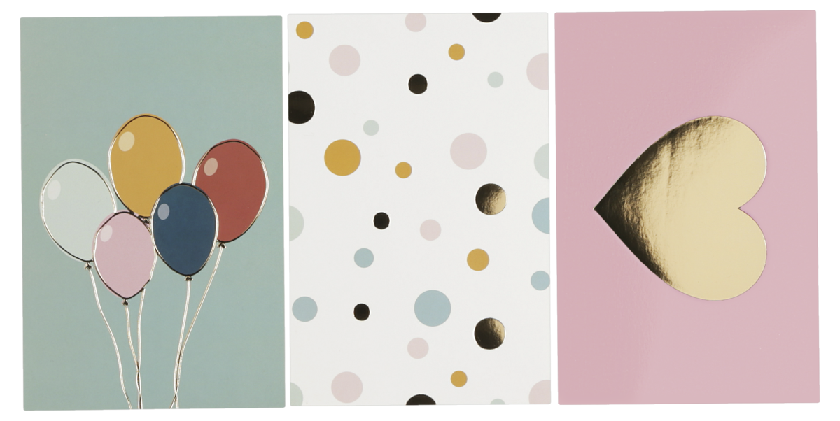 • Enkelkort i 3-pack med olika motiv.