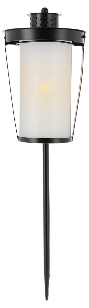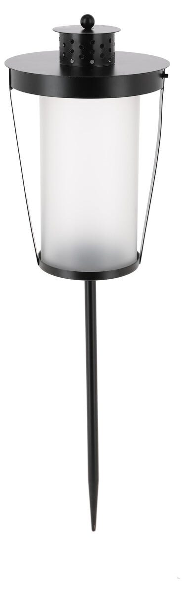 • Gravlykta av svartlackerad metall och frostad glascylinder.