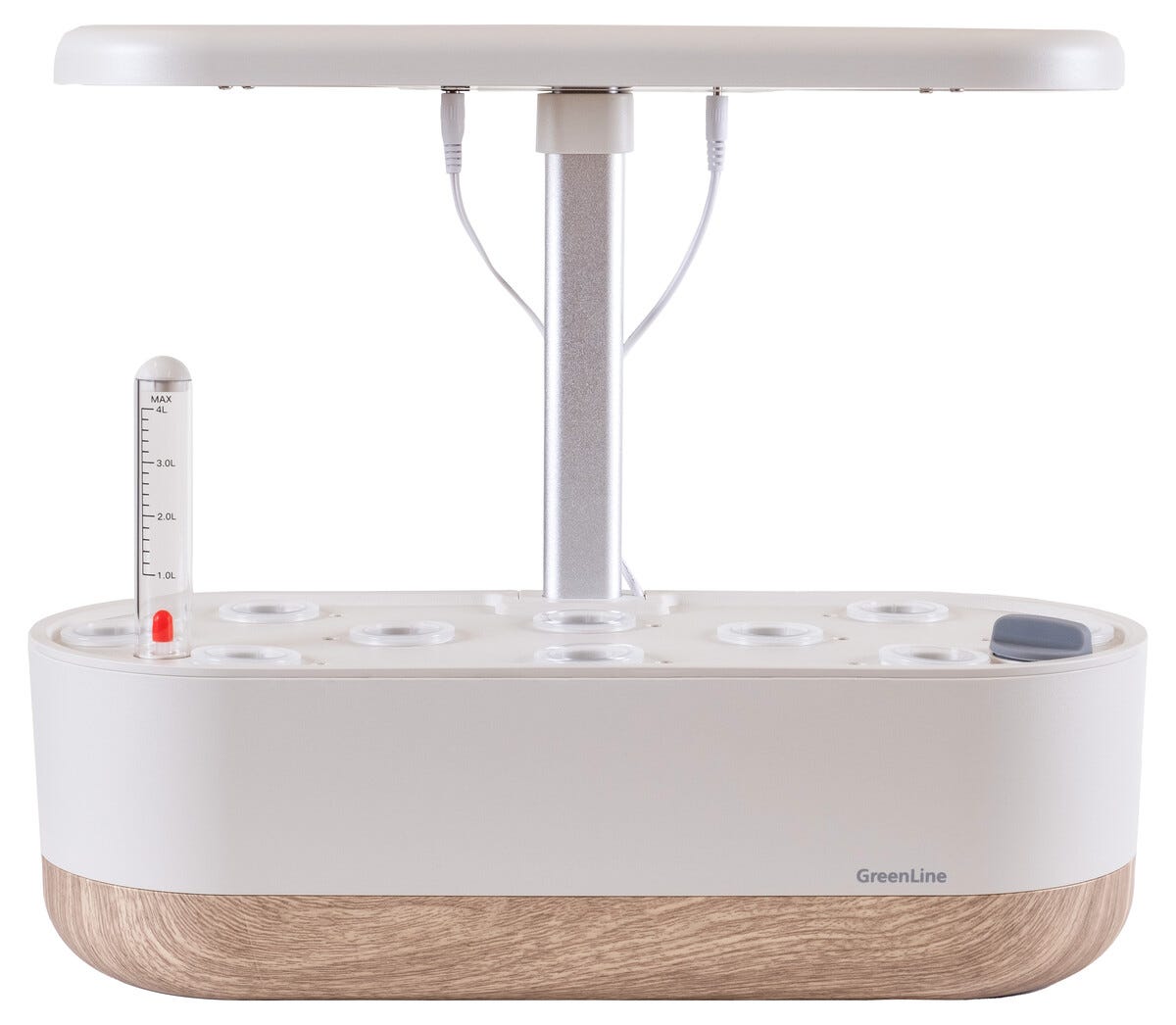 • Rymligt odlingskärl (4,2 liter) med plats för 10 pluggar/korgar. Inbyggd pump.