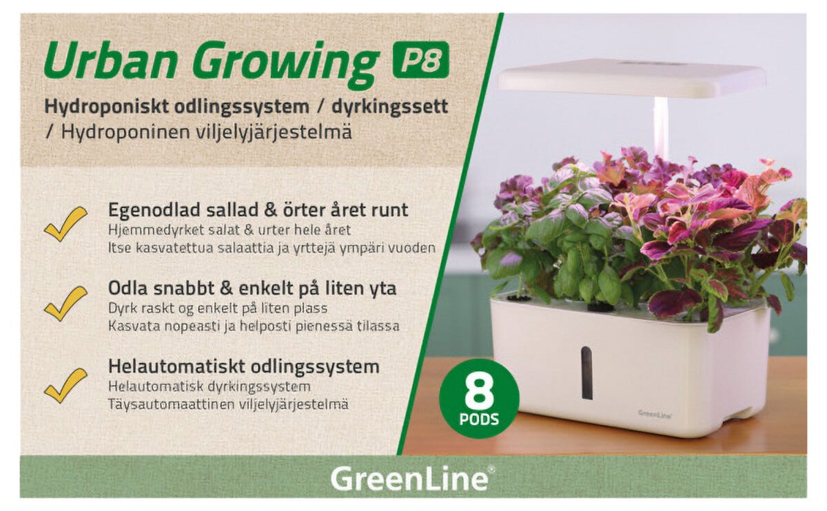 • Greenline Urban Growing P8 – helautomatiskt hydroponiskt odlingssystem.