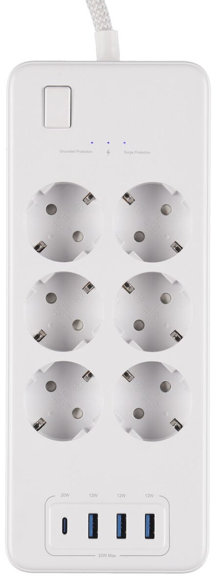 • Grenuttag med 6 uttag samt USB-C och USB-A – ladda allt på samma ställe.