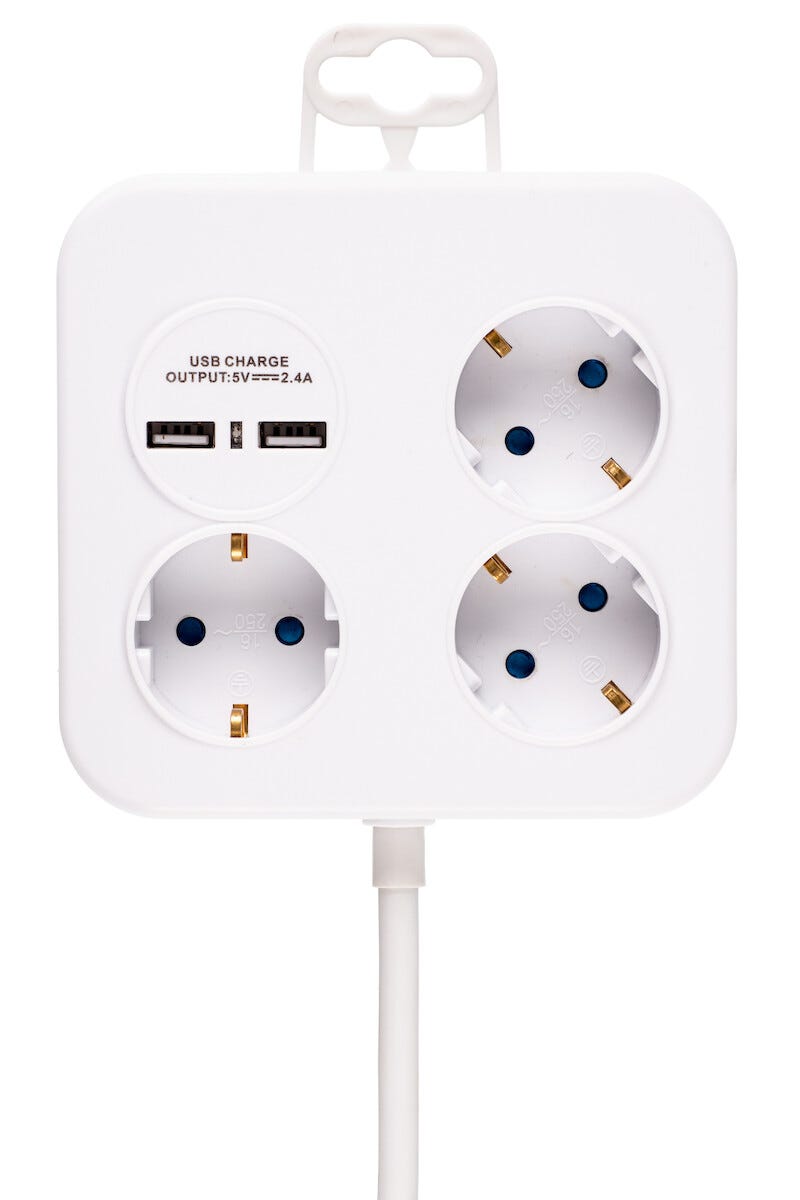 Grenuttag med USB-laddare 3-vägs