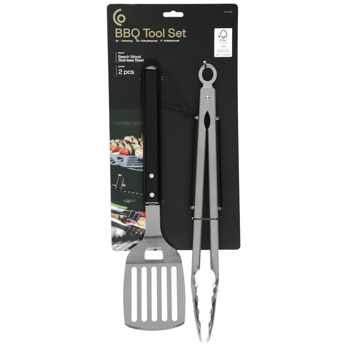 • Grillverktyg set i 2 delar i rostfritt stål – stekspaden har även flasköppnare.