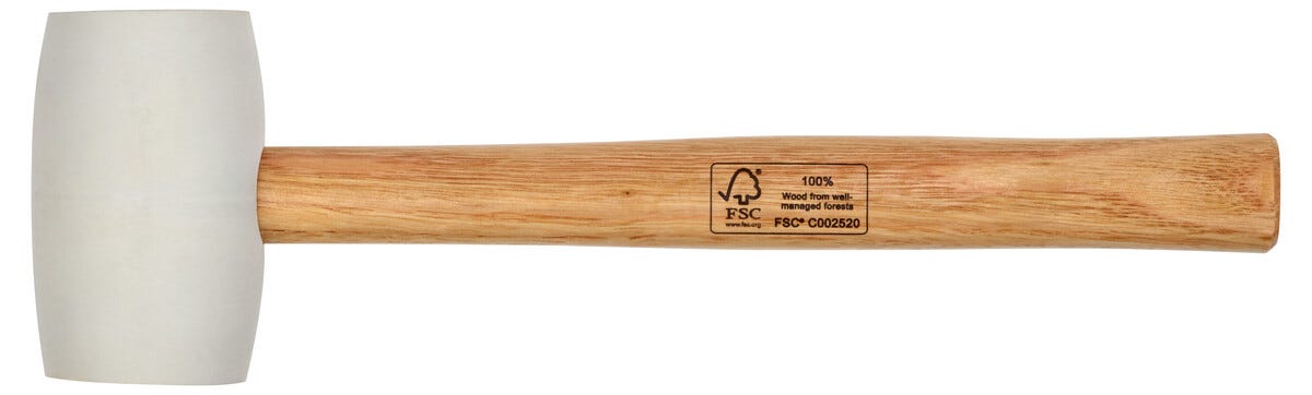 • Av massivt gummi med träskaft.