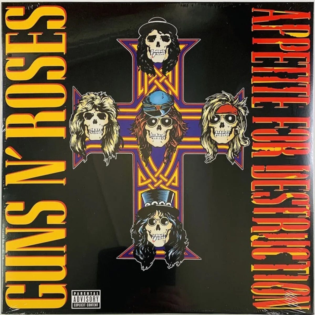 • LP-skiva med Guns N’ Roses explosiva debutalbum.