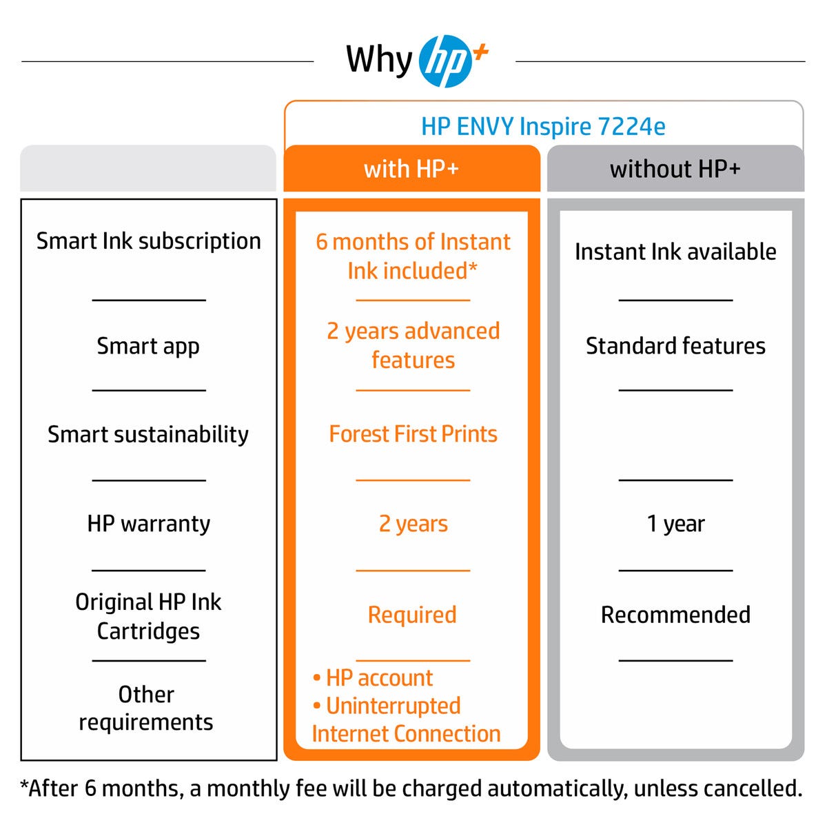 • HP Envy Inspire 7224e Instant Ink – bläckstråleskrivare med touchskärm, inbyggd skanner och kopiator.