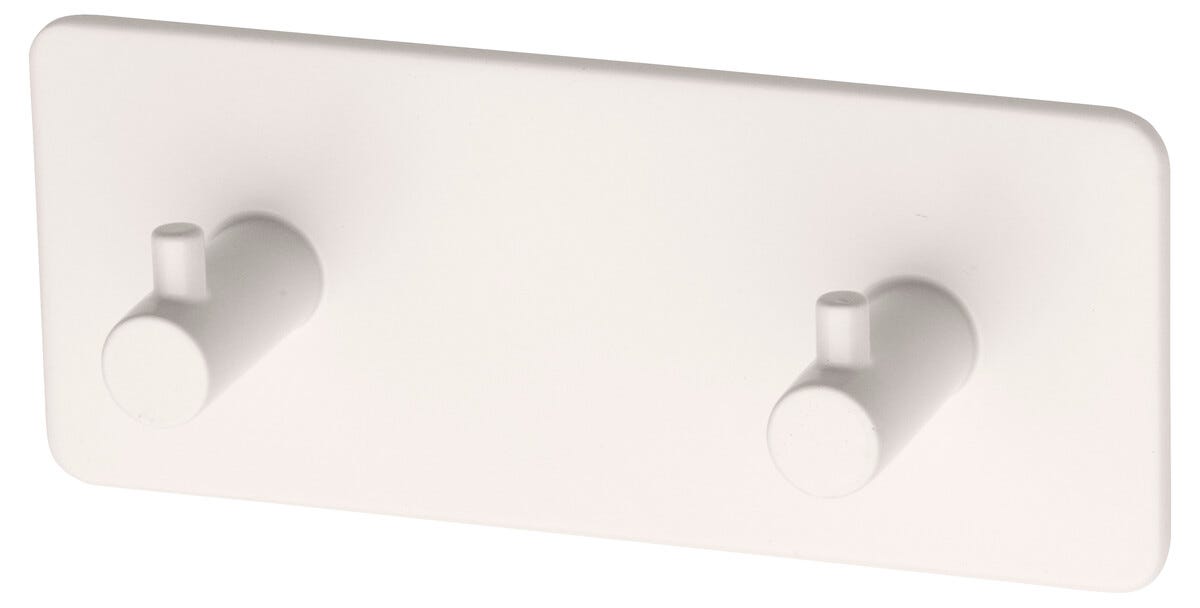 • Dubbelkroken monteras på släta, tåliga ytor, finns i flera färger.