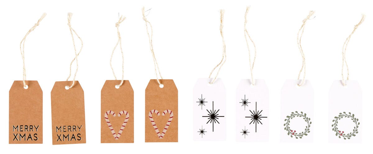 • 8-pack hängetiketter med olika motiv och former.