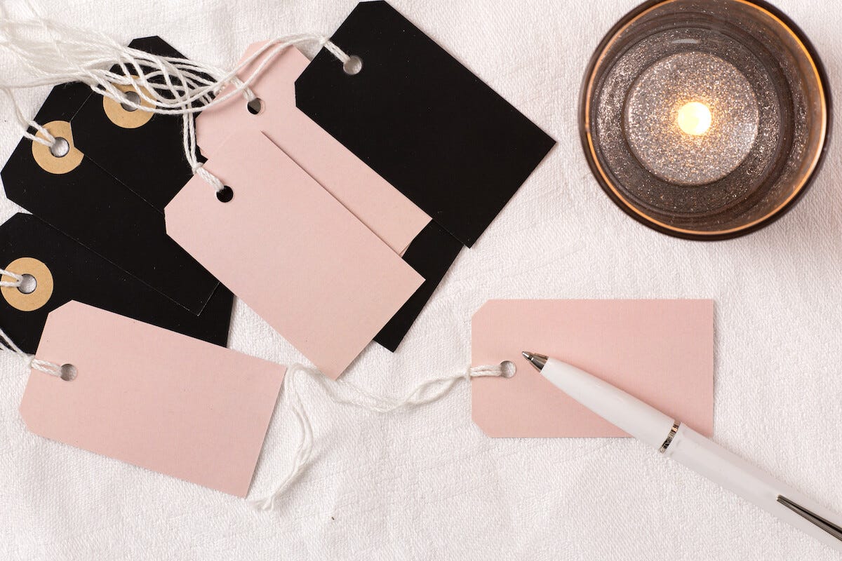 • Hängetiketter, perfekta att dekorera presenter och julklappar med.