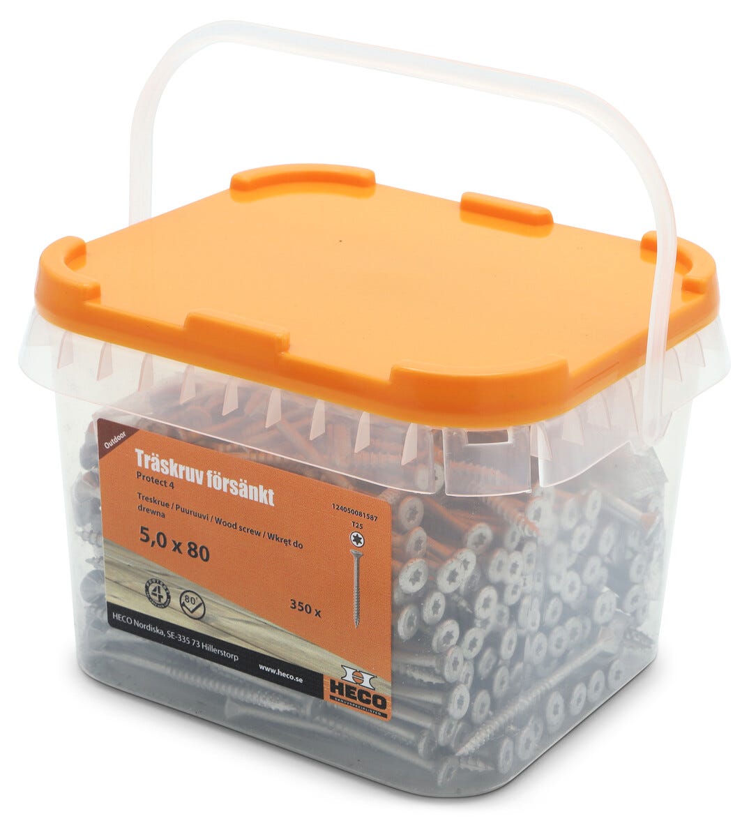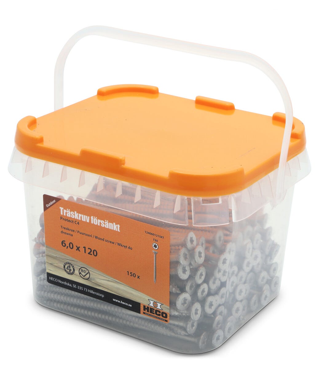 • Heco Protect C4 – härdade träskruvar med typgodkänd rostskyddsbeläggning.