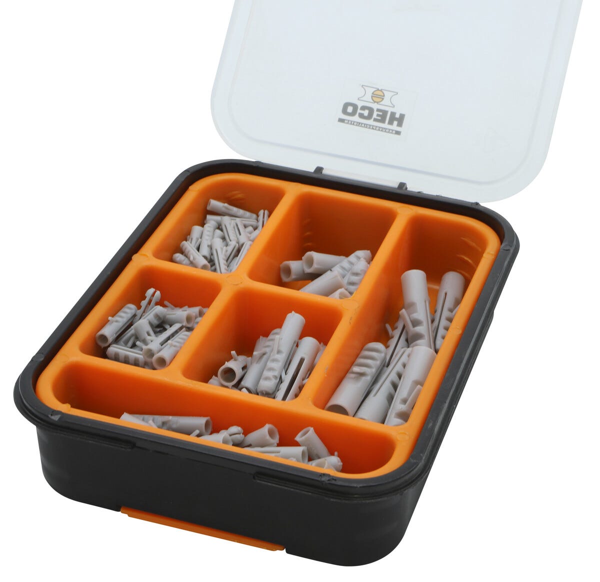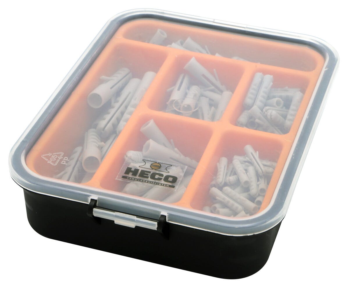 • Heco sortimentsats – 100 pluggar i 6 storlekar.