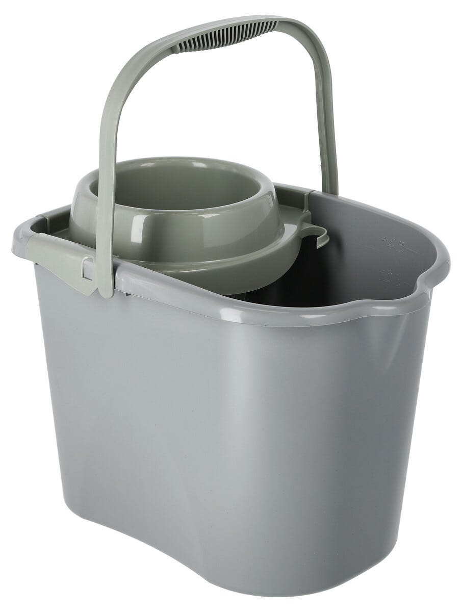 • Tålig plasthink med bärhandtag, hällpip samt mopphållare.