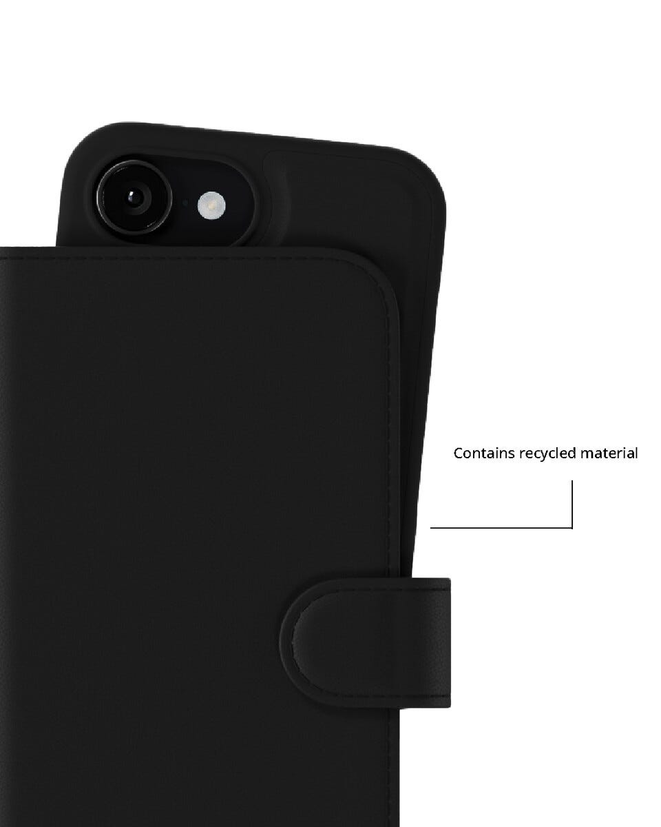 • Plånboksfodralet är tillverkat av 100 % återvunnen PC-plast.