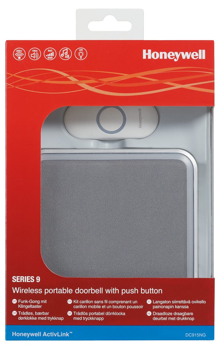 • Honeywell DC915NG – trådlös ringklocka med räckvidd upp till 200 meter.