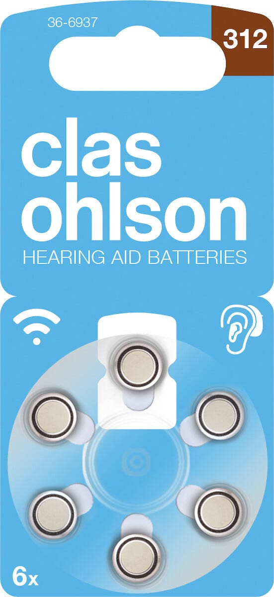 • Hörapparatsbatterier 312 – 6-pack batterier med lång förvaringstid.