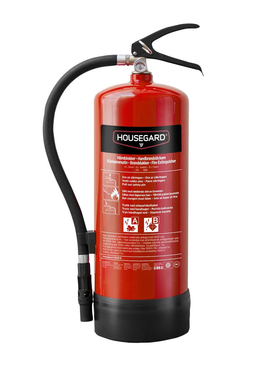 • Housegard skumsläckare – släcker bränder i fibrösa material och vätskor.
