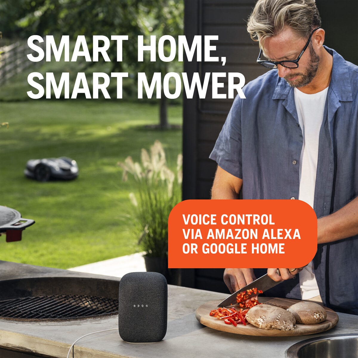 • Skonsam klippning med vädertimer – anpassar klipptid efter gräsets tillväxt.