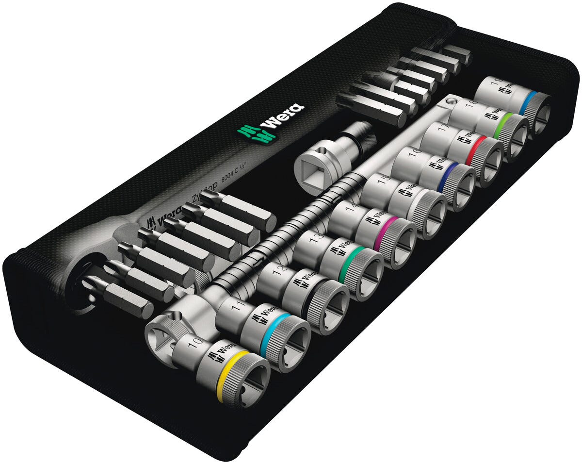 • 28 delar - sexkantshylsor, förlängare, spärrnyckel, bits m.m.