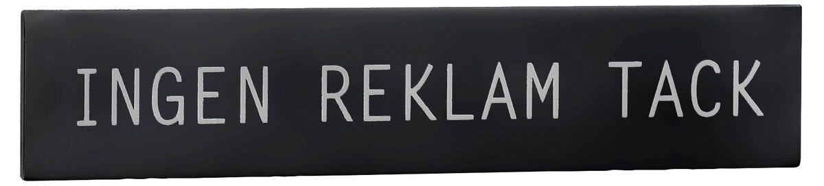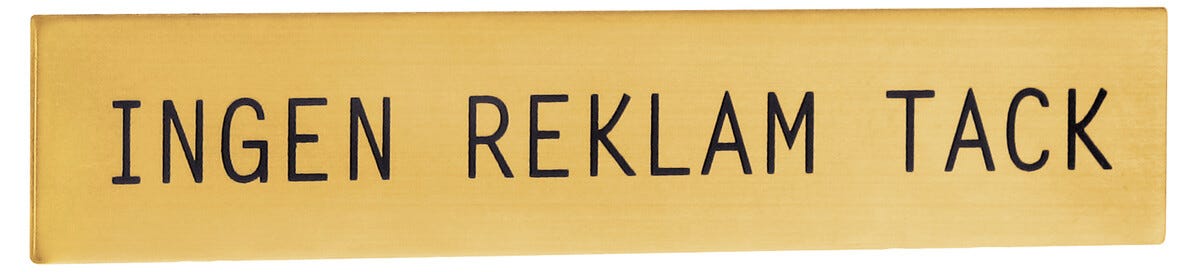 • Ingen reklam tack dörrskylt och brevlådeskylt.