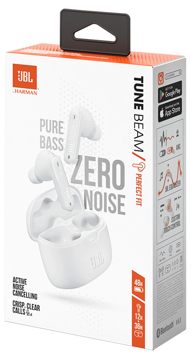 • JBL Tune Beam in ear hörlurar med en tät och bekväm passform.