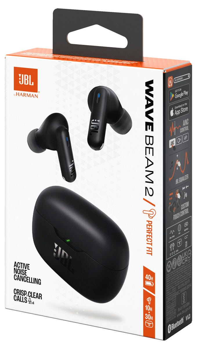 • JBL Wave Beam 2 in ear-hörlurar – upp till 40 h speltid med laddfodral.